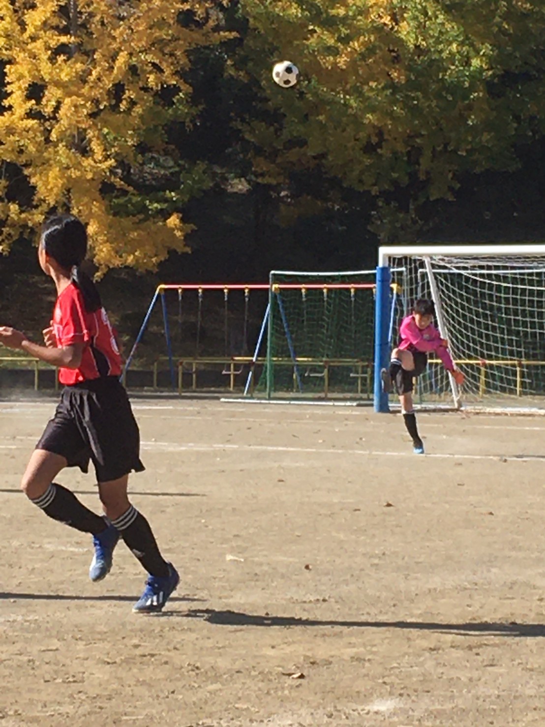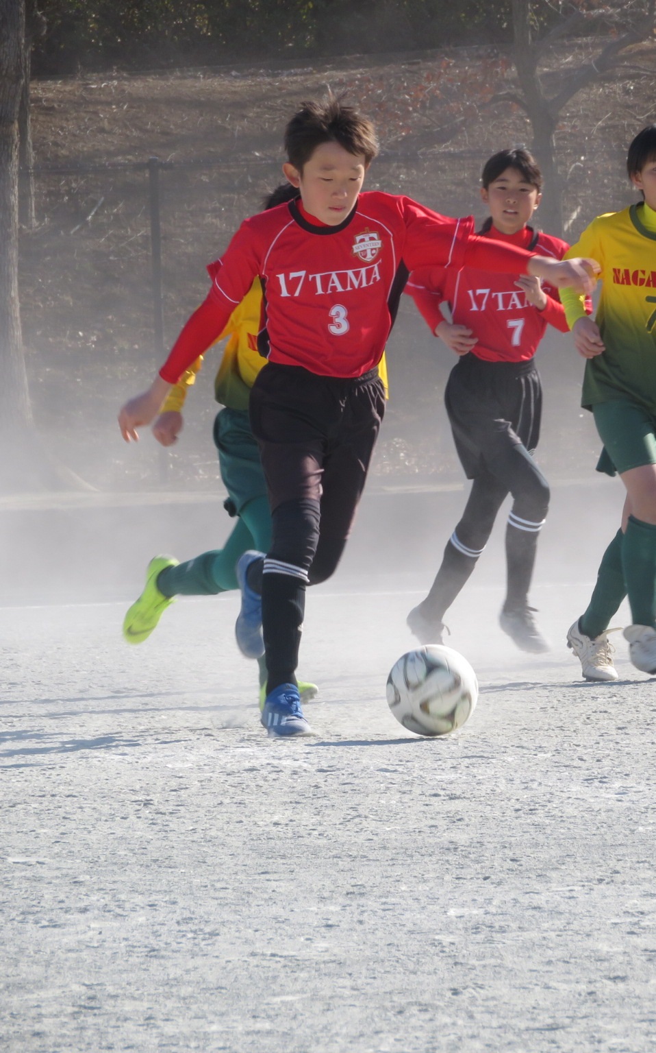ぬかるみで滑ったり、ドリブルしても足元にボールがついてこなかったりと、普段通りにことが進みませんでした。